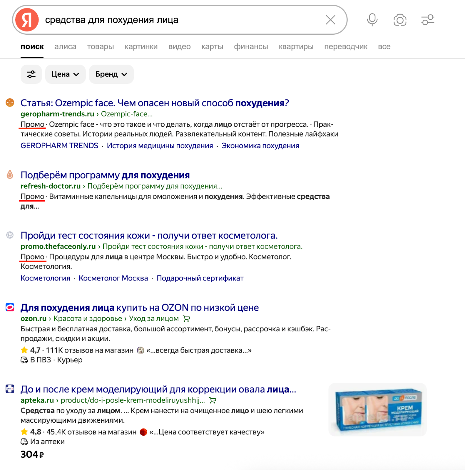 Так выглядит контекстная реклама в Яндексе. Источник: ya.ru
